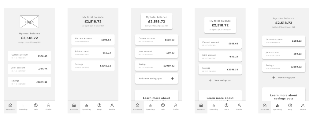 - Competitive analysis – Examining existing banking apps and digital products that aligned with the design brief.