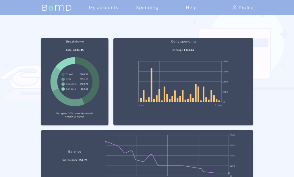 Using layouts, colours, typography and iconography, I developed high-fidelity responsive designs for a new digital banking website, ensuring a seamless and engaging user experience.