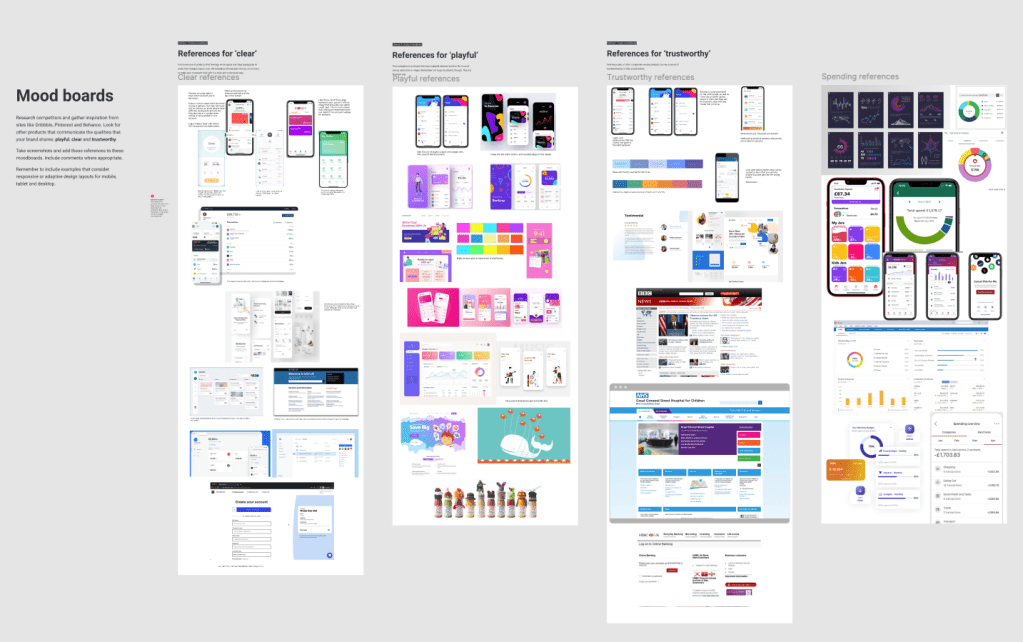 - Mood boards – Gathering visual inspiration from brands that successfully balanced professionalism with approachability, such as Monzo and Slack.